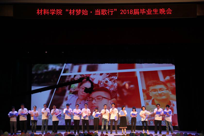 晚会开始前,老师们献上深深祝福和殷殷嘱托。梁叔全院长希冀毕业生们能铭记校训院训,传承弘扬伟德bv1946官网首页的优秀文化,用在学校学院习得的优秀品格和本领去铺就成功之路,祝愿大家在今后的路途上爱情事业双丰收;王德志书记则希冀同学们“立报国之志,怀感恩之心,成栋梁之材”;胡小清副书记回忆了与同学们在一起的时光,嘱咐毕业生们常回家看看。此外,所有副院长和14级辅导员及各班班导师也纷纷送上祝福:希望大家不忘初心,砥砺前行,为祖国的材料科学事业的发展做出自己的贡献。