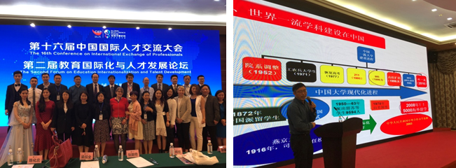 梁叔全院长应邀在“教育国际化与人才发展”论坛作主要嘉宾以“国际合作与世界一流学科和文化自信”做了主要发言,阐述了一流学科内涵、高水平国际合作和理性的学术文化对世界一流学科建设的作用,以及我院用创新表达文化、用创新支撑文化自信的理念,受到与会代表好评。一同出席本次论坛的还有国家外国专家局国外人才信息研究中心主任陈化北博士、教育部政策法规司原司长孙雷兵、中国教育发展战略学会副会长周满生、国务院参事、中国与全球化智库主任王辉耀博士等有关部门领导与专家学者。