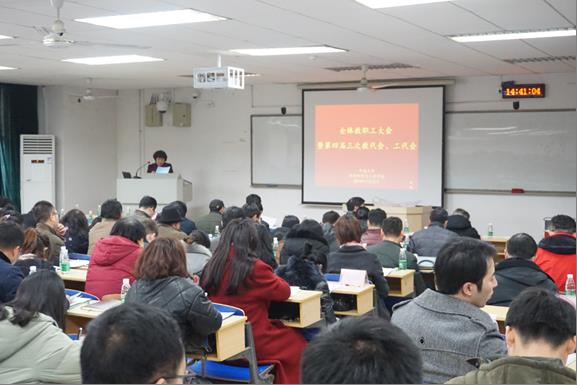 2018年1月23日下午,伟德betvlctor1946全体教职工大会暨第四届三次双代会在科教南楼202室顺利召开。全体教职工和离退休教师代表参加了会议。