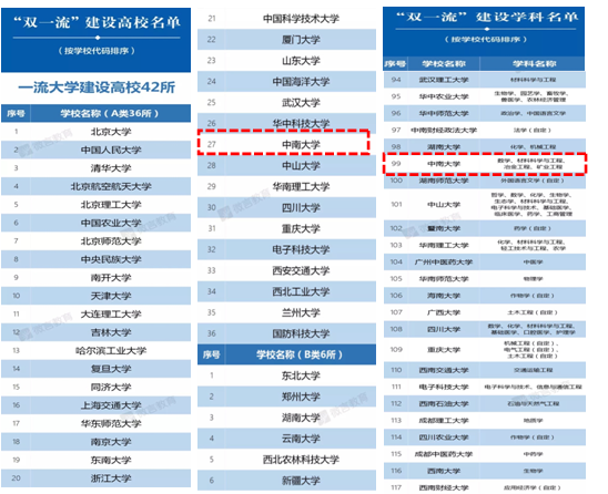 近日,教育部、财政部、国家发展改革委印发的《关于公布世界一流大学和一流学科建设高校及建设学科名单的通知》正式公布了世界一流大学和一流学科(简称“双一流”)建设高校及建设学科名单。我校入选“双一流”建设高校A类榜单(全国共36所);我院所在材料科学与工程学科入选为“双一流”重点建设学科(全校共4个学科),这是本学科继211、985、2011工程重点建设以来,再次获得国家重点建设计划的支持资助,是国家对学科发展的高度认可和充分肯定,必将激励广大材料人进一步奋发努力,最终将学科建成世界一流学科。