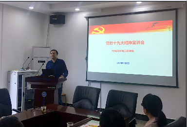 宣讲会由党委书记王德志主讲,传达了十九大会议精神,安排部署了学院学习宣传贯彻党的十九大精神的相关工作。