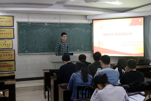 随后,各研究生党支部书记依序进行本学年党团班建设项目申报答辩。各党支部纷纷提出了形式多样、主题鲜明的活动方案。有专题教育类型的,有致力支部内部建设的,有志愿服务社会的,有党史知识竞赛的……其中,博士第三党支部提出了与自身专业实际相结合的“强化意识,提升能力”党支部创新活动方案,通过观看纪录片重温党的历史、缅怀革命先烈,组织支部成员参加“湖南企业走出去”知识产权战略专题培训会议等活动提高党支部凝聚力和学术科研能力;13级材料物理与化学支部结合学校廉政教育宣传月策划的“两袖清风,廉洁自在心中”毕业生党员廉洁教育系列活动,在毕业生党员踏入社会前,开展廉洁自律教育,帮助毕业生党员树立“务实为主,廉洁做人”的价值观,更好地服务社会;14级材料物理与化学和14级材料学研究生党支部联合策划的“党团引领成长,红色点亮青春”主题党史知识竞赛紧抓支部建设主题,策划内容详实,能有效加强党团班联动,受到了在场老师的一致好评。