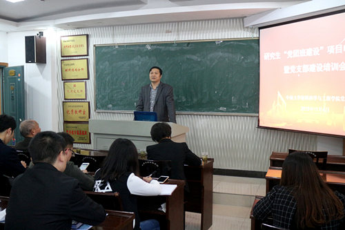王德志书记重点就如何加强研究生党支部建设作了培训。王书记指出,党支部建设工作是一项重要的基础性工作,学校、学院一直十分重视这项工作,进行了一系列的部署;各党支部要对照《关于开展党支部建设年活动的通知》、《关于进一步加强研究生党支部建设的意见》等文件要求,紧密围绕组织建设、思想建设、作风建设、制度建设、反腐倡廉建设、纯洁性建设等主要内容,狠抓日常工作,完善制度建设、精细实施方案、强化理论研究,结合中央、学校党委要求和本专业特色,针对性地开展主题教育,将活动做实、做优、做出成效;同时,要特别注意利用新媒体的优势服务党建工作,提升党员在校园舆论营造和正能量传播的引领作用。