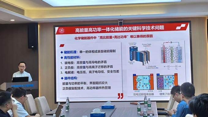受伟德betvlctor1946周江教授邀请,林天全教授就“高能量高功率一体化储能材料与器件”进行了学术报告。林天全教授指出,当前以电磁弹射、智能电网为代表的新一代高端装备,对电化学储能器件提出了高能量、高功率、高安全、长寿命(简称“三高一长”)的严苛要求,而现有以锂电池和超级电容器为核心的两大类化学储能器件,因自身储能机理的局限性,始终难以同时满足这一关键需求,成为制约高端装备发展的重要瓶颈。