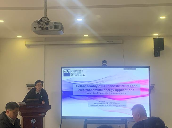 孙子其教授就“用于电化学能源应用的二维纳米结构自组装”方面进行了学术报告。在本次报告中,孙子其教授介绍了其所在团队的研究方向—纳米材料科学-生物启发智能材料及可持续技术,用于揭示自然目标的结构-优势-功能关系,实现不可思议性质和功能的微观结构;从国家氢能战略出发,因二维催化剂具有超高的可接触表面和活性位点,是从水分解中产生绿氢的良好高效催化剂,因此孙子其教授团队研究了一种通过合理利用层状反向胶束来实现过渡金属氧化物超薄二维纳米片分子自组装的通用方法-通过氧空位浓度调制转化催化惰性二维Bi2O3纳米片用于HER催化,该方法提供了最高的可访问性和活性位点可用性;为了克服原始二维材料的一些固有缺陷,还提出了改性和异质结构工程,以进一步提升二维材料在可持续能源存储和转换应用中的性能,因合成的结晶化超薄过渡金属氧化物纳米片具有受限的厚度、高比表面积和丰富的化学反应活性位点,因此在纳米结构电子学、光子学、传感器以及能量转换和存储设备中展示出广阔的应用前景。