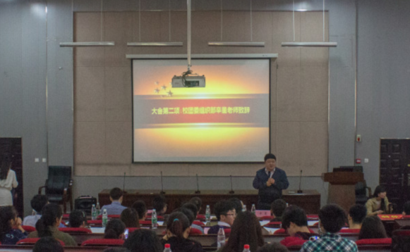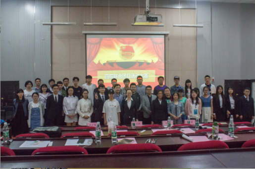 会议伊始,音乐奏起,与会人员肃然起立,齐唱国歌。辛星老师发表讲话并寄语各团支部发挥更好带头作用我们要以此为契机,加强班团合作,为实现中国梦添砖加瓦,在这催人奋进的新干线前进!。大赛前期从众多团支部中遴选出的八个联合团支部依次通过精美的PPT展示精心策划的团日活动。