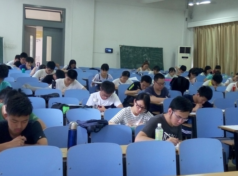 10:00,高等数学模拟考试正式开始。考场上,同学们屏声敛气,沉着应战,认真分析,仔细作答,他们时而低头沉思,时而奋笔疾书,考试有条不紊的进行着。部分同学早早地完成了试题,提前交卷离开考场;还有部分同学稳如泰山,反复检查、修改、确认,考试结束铃声响起后才交上试卷。