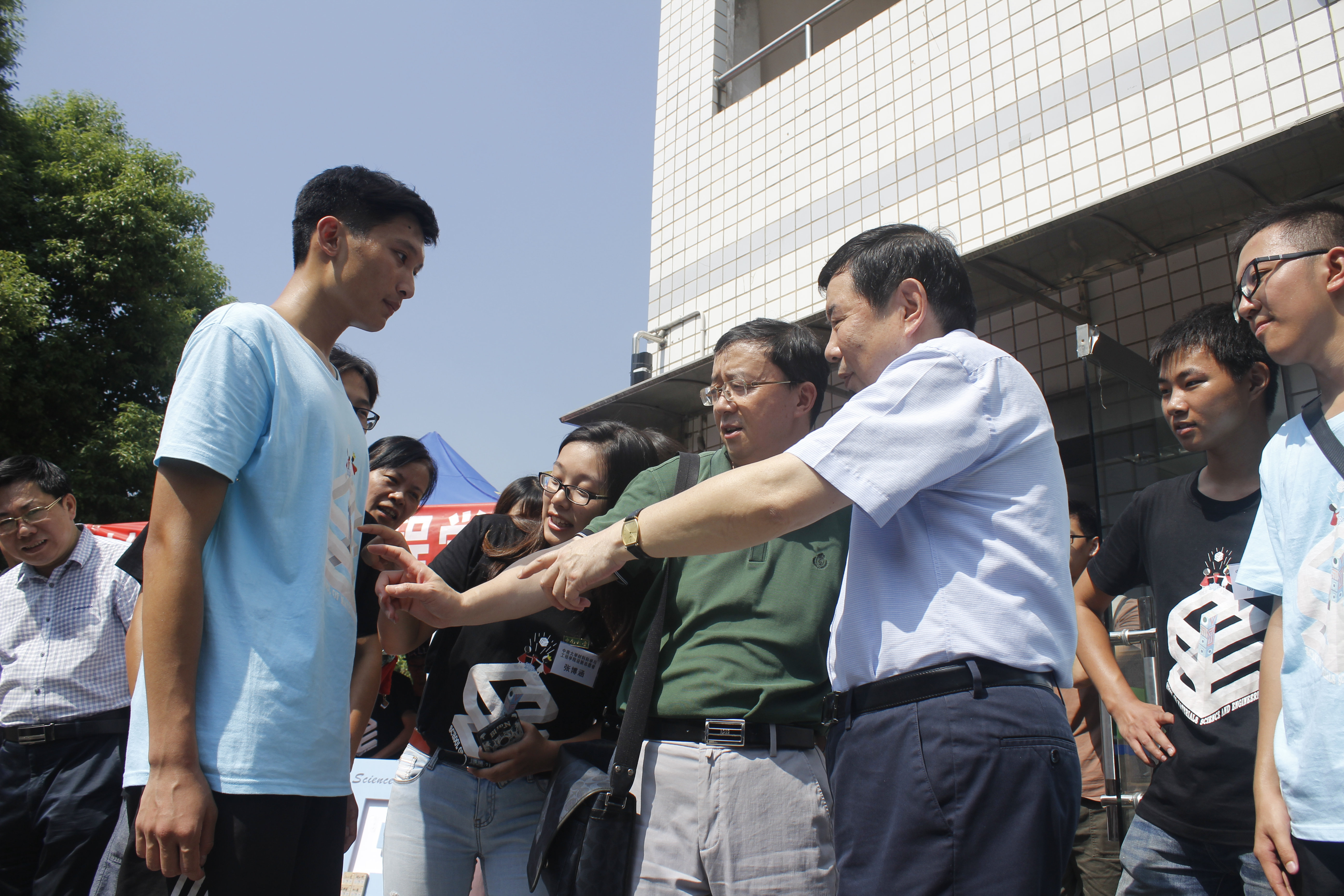 新学年,新面貌,学院专门为新生设计了新院服。“MSE”是伟德betvlctor1946的英文缩写,独具匠心的图案,天蓝色的色调,展现出材料学子干净整洁、青春昂扬的精神风貌。高文兵书记欣然听完志愿者的讲解后,对我院迎新工作给予了充分肯定和表扬。