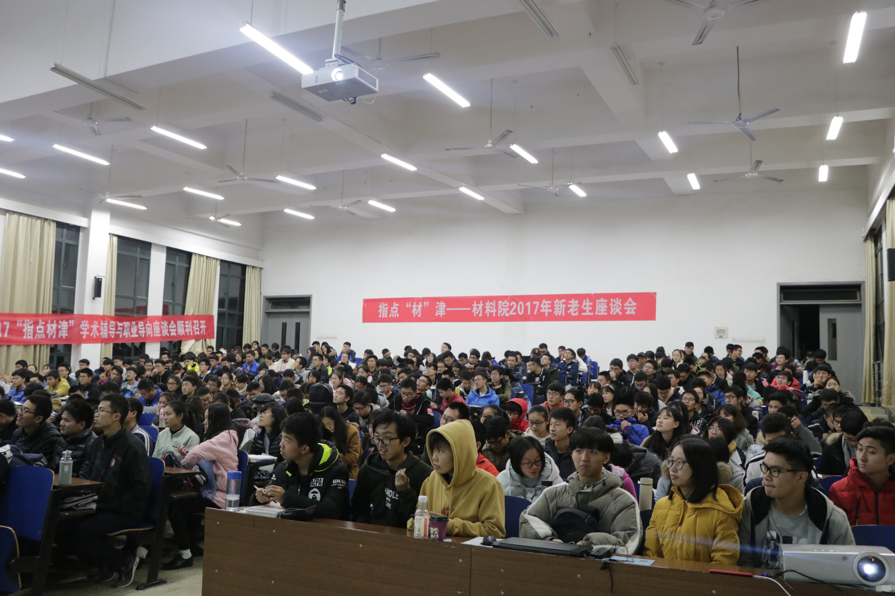 2017年11月19日中午,由学习部主办的新老生交流会暨学术辅导与职业导向座谈会于新校区D123教室召开。学工办主任蔡圳阳,17级辅导员杨露,14级优秀学生代表以及材料院17级全体同学出席本次活动。