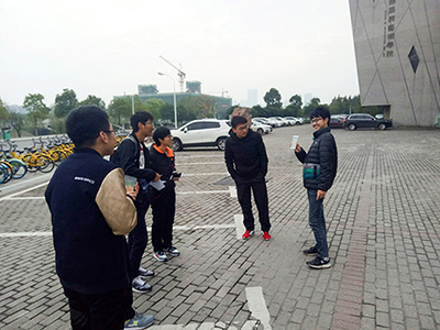 主持人将同学们每五个同学分为一组,由崔政同学向大家介绍本次户外团日活动的游戏环节规则。游戏环节中,同学们需要完成你划我猜、交通和共享单车知识问答、摆放小黄车等任务。同学们发挥想象,用丰富的肢体语言和表演传达含义;知识问答,你了解共享单车吗?摆放小黄车,又整齐又快。在轻松愉悦的氛围中,游戏环节结束,前三名的小组都有精美的奖品。