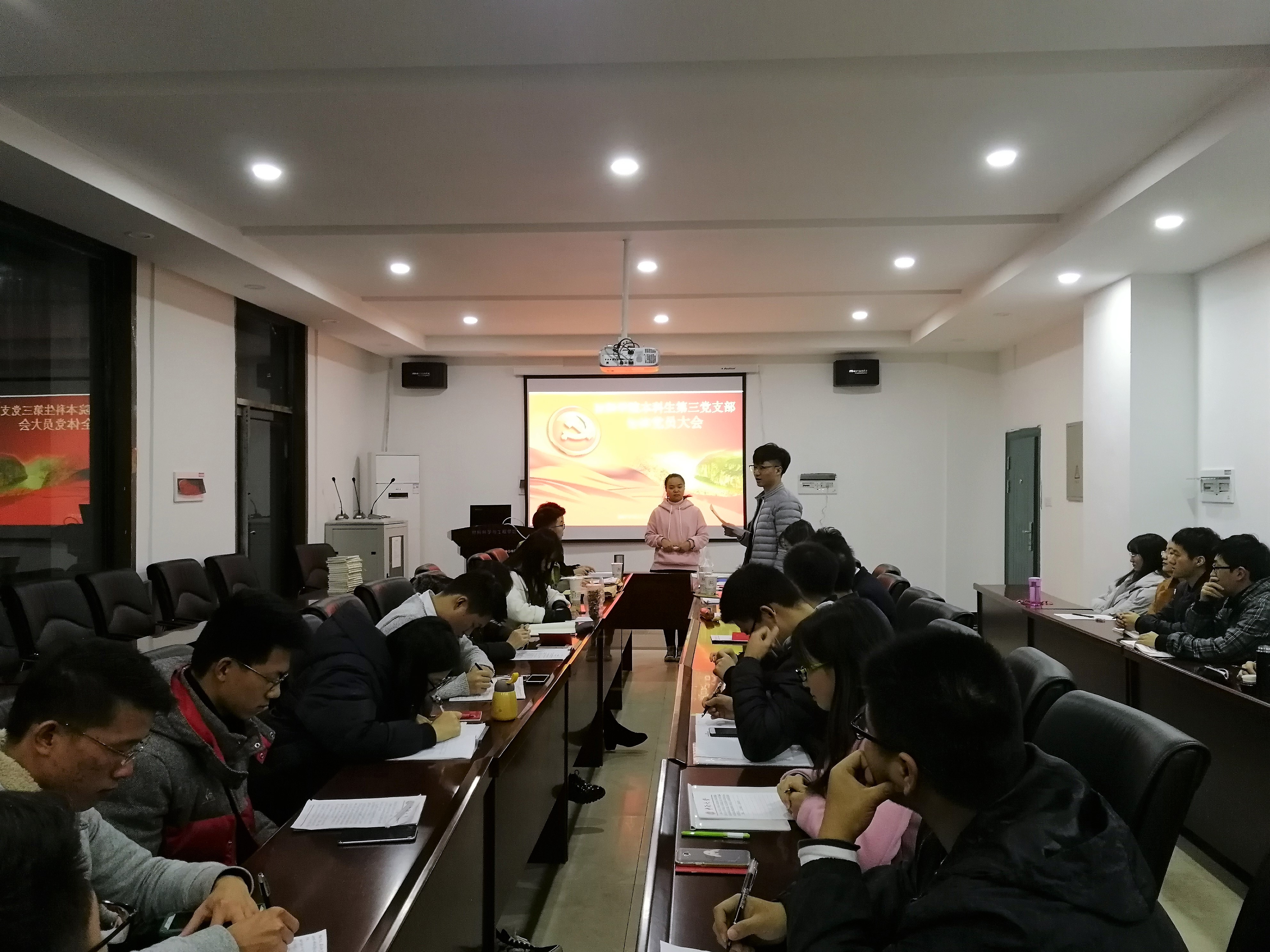 12月8日晚,伟德betvlctor1946本科生第三党支部全体大会在校本部特冶楼229顺利召开。参与此次会议的有第三党支部的党员、预备党员和发展对象。会议由党支部书记彭需发主持,主要对陈锦等5名预备党员发展为中共正式党员以及李莹蕊等5名发展对象转为预备党员进行讨论和表决。