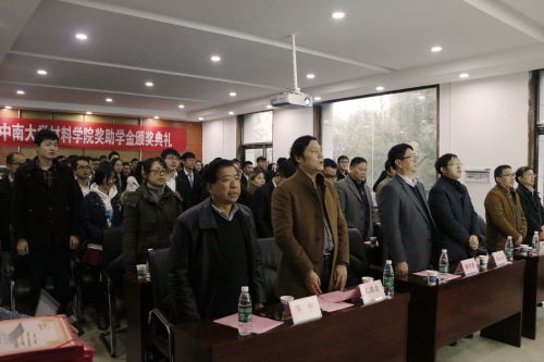 随之广亚铝业集团副总经理潘学著先生上台发言,对获奖学生表示诚挚的祝福,同时表示他们集团随时欢迎中南学子老师去学习指导参观。最后姚勇副部长发言,表示奖学金颁奖是为了激励同学进步而不是物质奖励性质,希望同学们可以更加奋发向上,表达了对同学未来的深切期望。