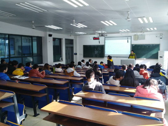 另一个精彩的活动环节是感恩节知识抢答和“你画我猜”,同学们通过随机的分配让三个班的同学分成多个小组,大家在一起互相交流,配合也渐渐默契了起来。现场气氛十分活跃。