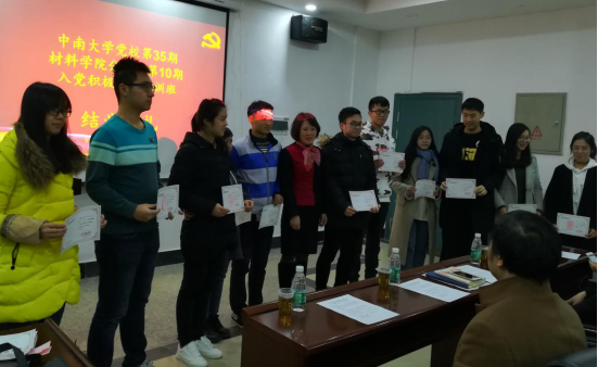 12月20日晚上19:00,伟德bv1946官网首页党校第35期(材料院分党校第10期)入党积极分子培训班结业典礼于特冶楼229顺利召开。参会人员有伟德betvlctor1946党委书记、分党校校长王德志;伟德betvlctor1946党委副书记、分党校副校长胡小清;伟德betvlctor1946党委组织员邹利民老师;辅导员老师蔡圳阳、彭需发等;伟德betvlctor1946分党校班导师张桐以及伟德betvlctor1946全体入党积极分子;结业典礼由张桐老师主持。