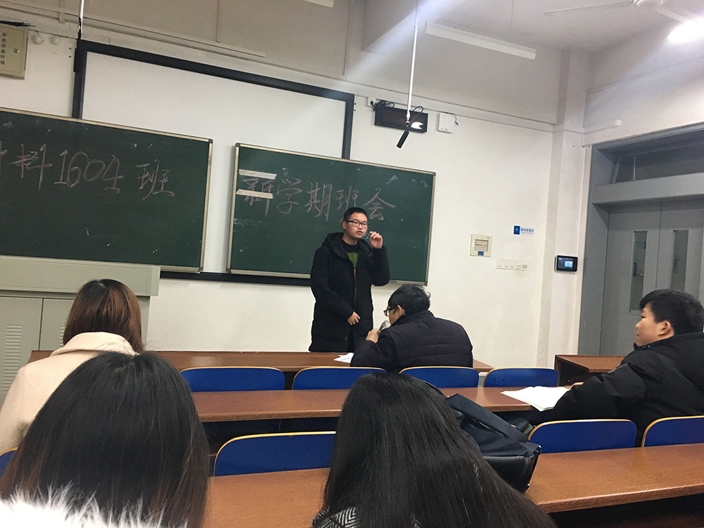 3月1日晚,材料1604班在A座124教室召开了新学期的第一次班会,并邀请班导师李芝华参加。本次班会由班长许文杰主持。