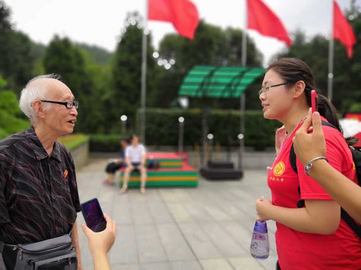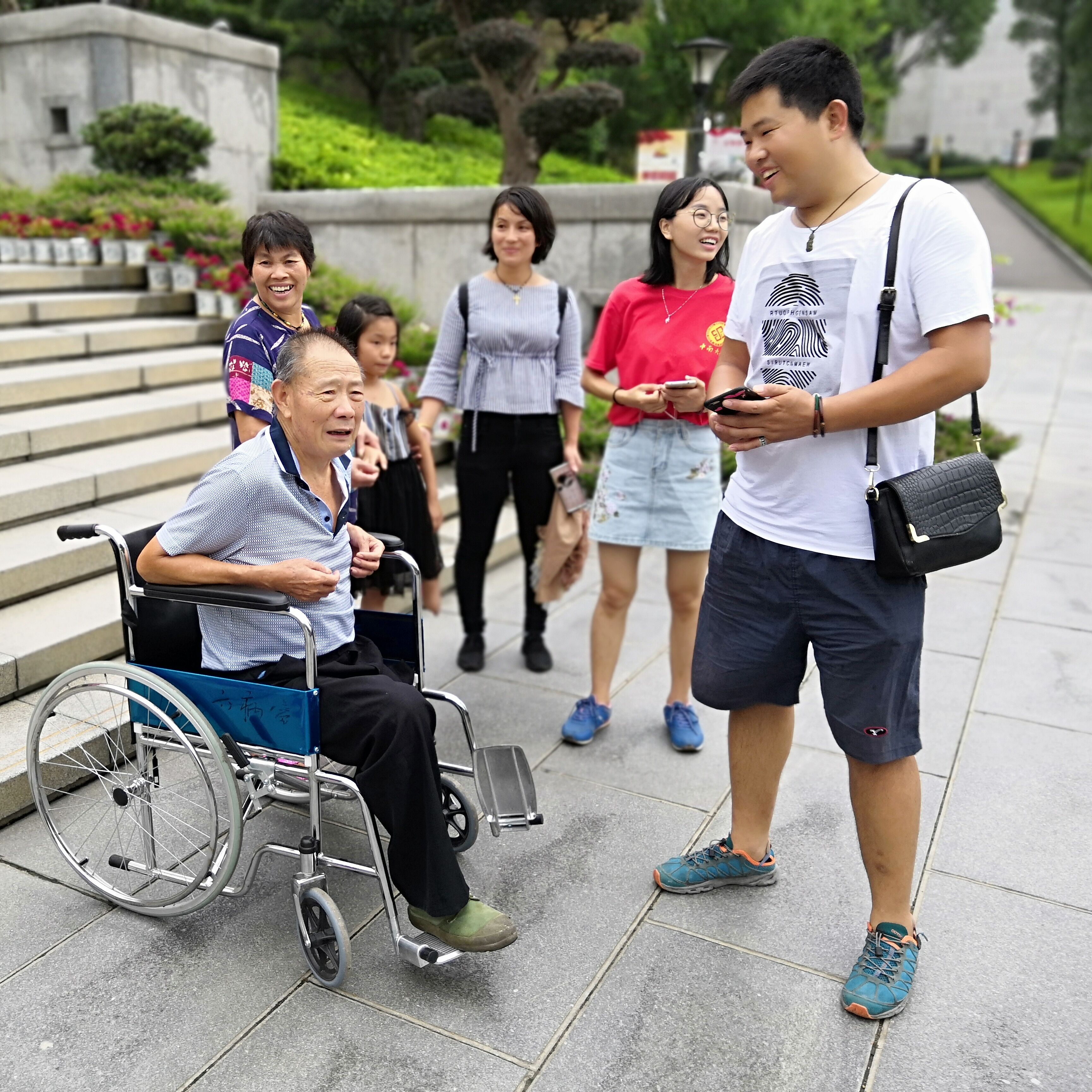 当天上午,小分队在毛泽东同志纪念馆调研。一位坐着轮椅的老爷爷和失去左腿的小女孩引起了我们的注意。小女孩隔着玻璃仔细的看着主席生前用过的钢笔,推轮椅的叔叔微屈身子将展品注释上的字一一读给爷爷和女儿听,爷爷一边听,一边点头,盯着展品坐了许久。据了解,这次来毛主席故里参观瞻仰是一家三代人一直以来的心愿,爷爷十分崇敬毛主席,崇敬共产党,常常给子女讲述当年共产党英勇抗战的故事。虽然身体不便,可一提到毛主席,轮椅上的爷爷十分激动。他眼泛泪花地说道:没有毛主席,可就没有我们现在如此幸福的生活!当年那么苦都走过来了,现在再苦都能变成甜!