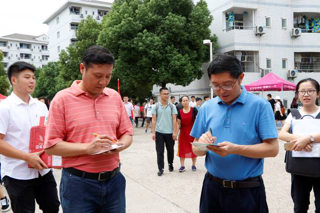 材料院党委书记王德志,院长梁叔全,党委副书记胡小清及学工办老师们密切关注着迎新工作。他们既带来了对迎新工作人员的关怀,也参与了时空信箱的活动。他们在写下对18级新生的祝愿与期望的同时,也为新学期、新气象点赞。