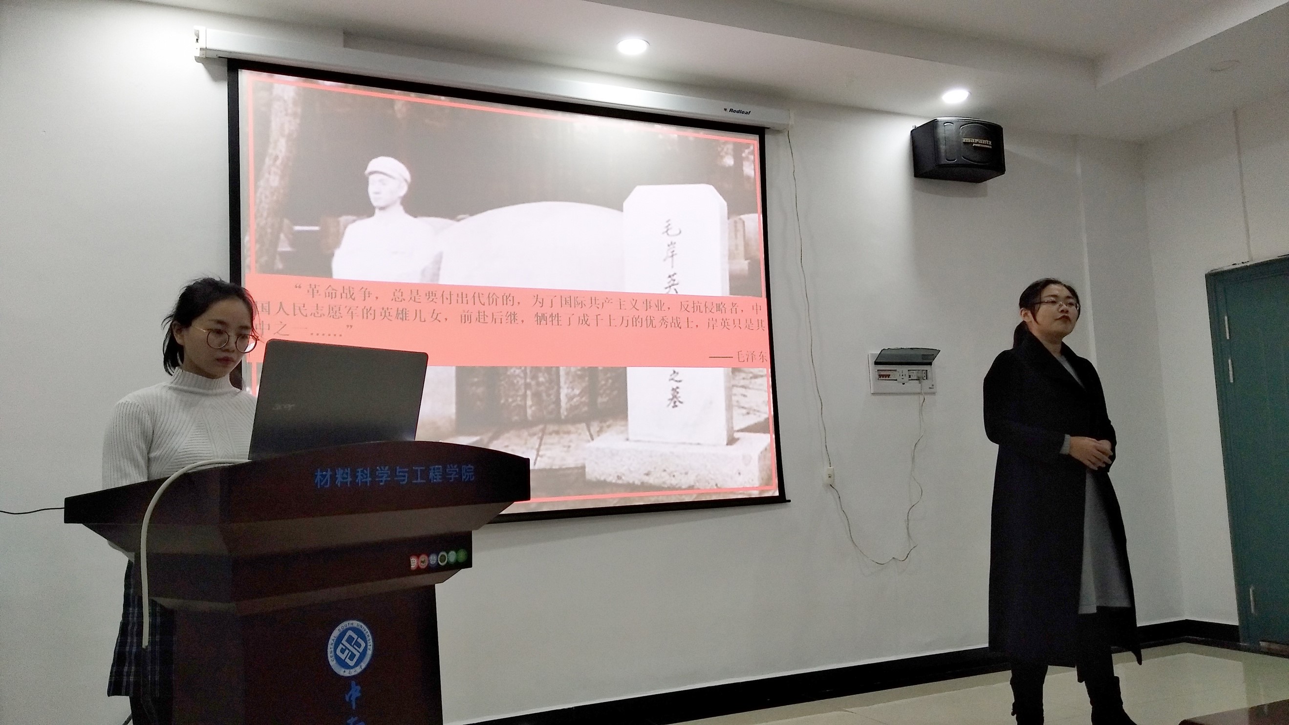 大会伊始,材材料院红色革命文化故事宣讲实践团展示了实践成果。首先有两名同学上台,在制作精良的视频播放过程中,徐徐向大家讲述毛泽东工人夜学的故事,他们的声音极其富有感染力、肢体语言动作丰富,立即吸引了所有人的目光,其所讲述的故事更是富有启迪含义,向我们介绍了一个为工人们受到教育而不辞辛劳、办夜学当历史老师的毛泽东,这些实践活动让毛泽东学到了怎样贴近群众、发动群众、组织群众。可是,鲜少有不流血的革命,不计其数的家庭作出了牺牲。在上一个故事结束后,另有两名女生上台,为我们讲述了毛泽东的儿子毛岸英在抗美援朝战争中牺牲的故事,女生们饱含情感,在其独特的嗓音衬托下,故事内容显得更加悲壮、感人,正是有如毛主席这样的老一辈革命家的“舍小家为大家”的精神,才有了我们如今的和平年代幸福生活。此故事讲述后,接着两名女生上台讲述了最后一个故事,一个为祖国牺牲的、宁死不屈的母亲——赵一曼,她于临死前写下的两封遗书,感人肺腑,在遗书中还不忘坚守秘密、保护组织,一字一泪感天动地。这三个故事一个比一个令人印象深刻,在汇报结束后收到了大家热烈的掌声。