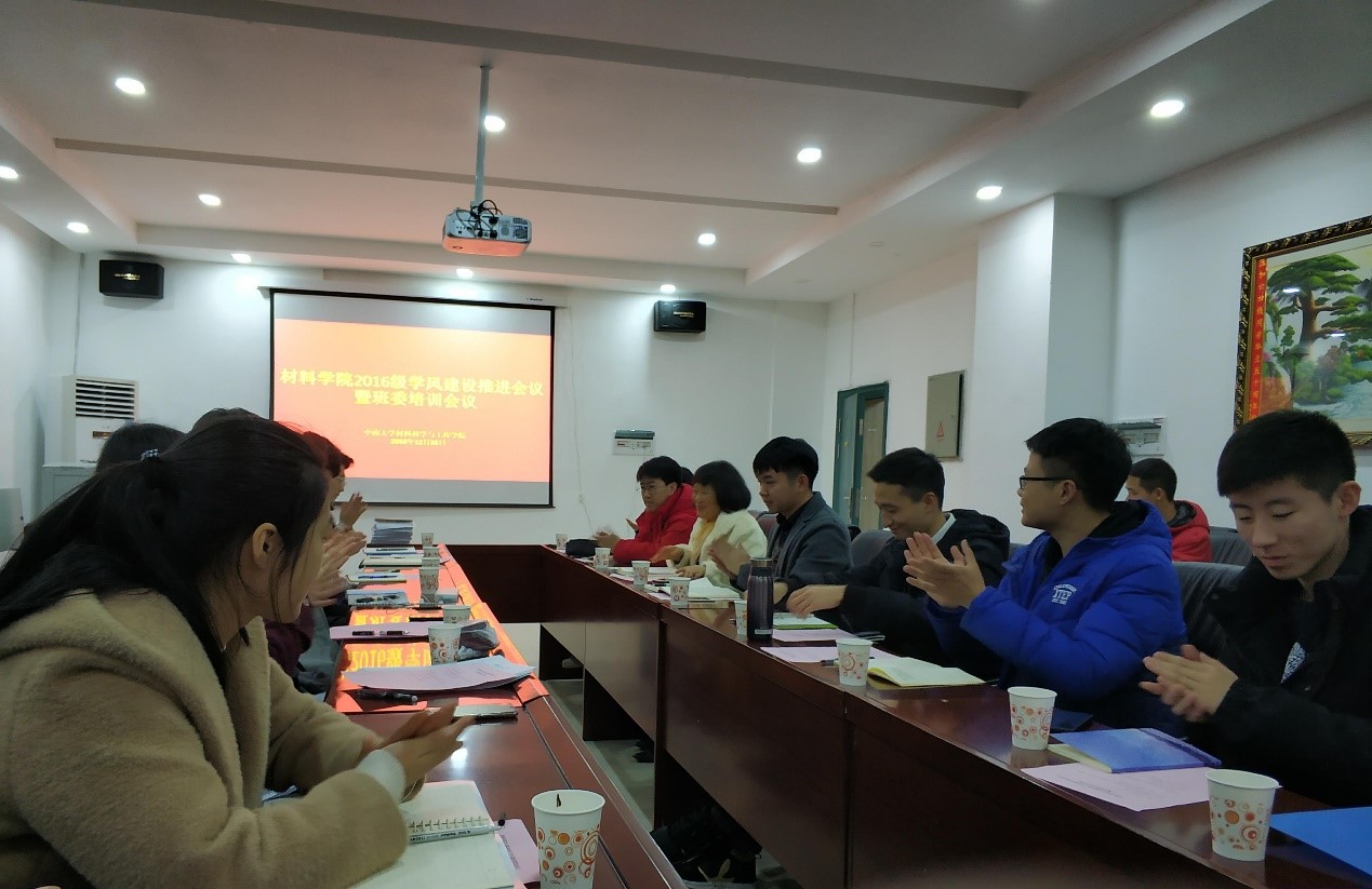 12月26日,为更好推进材料院学风建设和加强各班班委的协调配合能力,在特冶楼229召开16级本科生学风建设推进会议暨班委培训会议。学院党委副书记胡小清、16级辅导员彭需发以及16级全体班委参加此次会议。会议由彭需发老师主持。