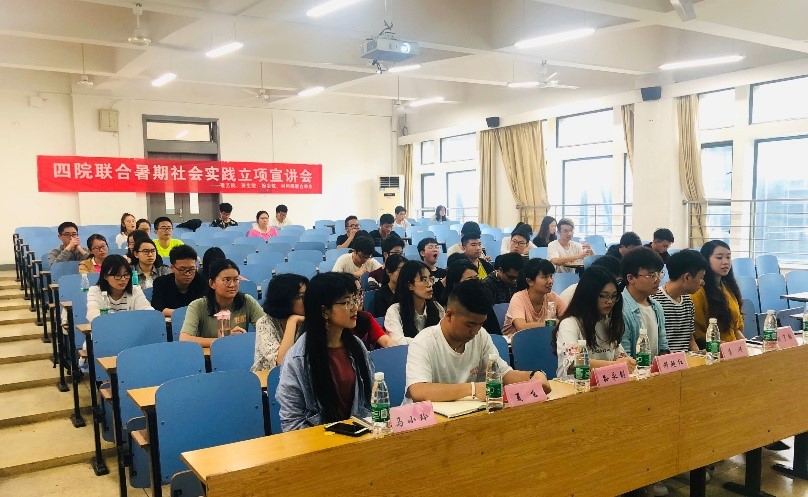 5月18日14:30,材料院、资生院、粉冶院、建艺院四院联合暑期实践立项宣讲会于新校区B座218教室顺利举行。伟德bv1946官网首页社会实践中心主任邓艳红,暑期社会实践优秀代表建艺院康硕,罗晓岚,刘宇赫,资生院夏飞,粉冶院马小玲出席了活动。本次宣讲会由材料国际1801刘若辰主持。