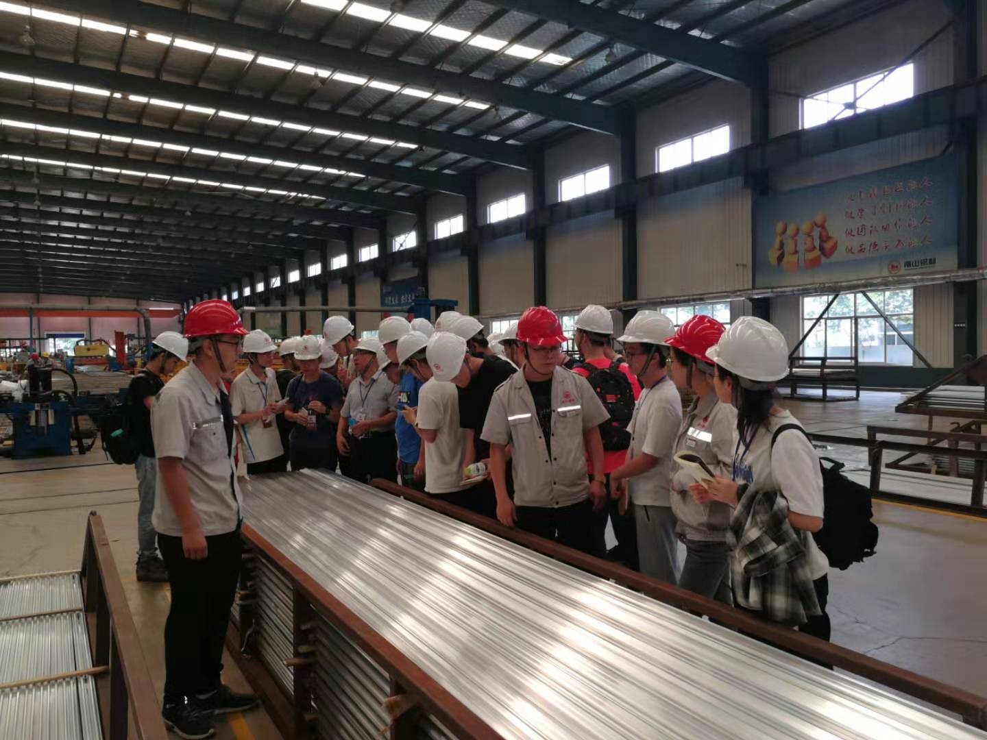 在南山铝材公司,我们参观了挤压模具的生产、建筑型材和工业型材的多条挤压生产线,以及阳极氧化、粉末喷涂等表面处理车间。实习过程中,在林老师的引导下,我们了解到铝加工行业的环境污染问题,并引发了对铝材行业新应用的思考。而在生产中,我们接触到了全铝家居的新概念和电解槽废水的处理,给了我们深深的启发。