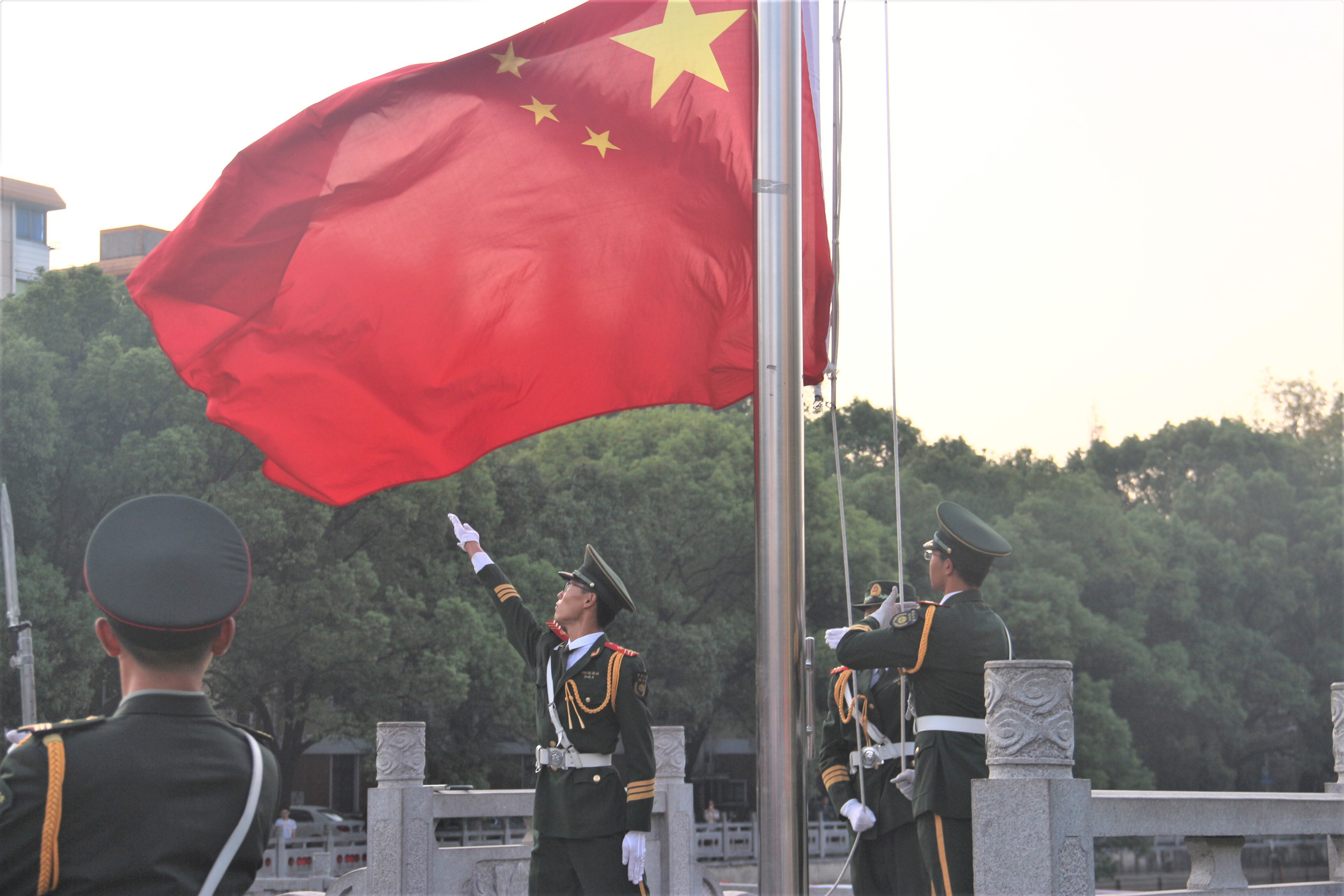 上午6:20,参与人员全部就位。建筑与艺术学院的八位学生代表,演唱《我和我的祖国》与《共筑中国梦》,为祖国母亲献上70岁的生日祝福。随之而来的是庄严的国旗护卫队,他们迈着整齐的步伐护送国旗入场,在全体师生激昂嘹亮的国歌声中,五星红旗冉冉升起。作为祖国的未来,我们用青春的誓言,郑重向祖国许下承诺:努力把爱国之情、报国之志投入祖国改革发展的伟大事业之中,用坚韧挑战极限,用信念铸就辉煌,做知行合一,经世致用的中南学子。在师生们激动的心情中,升旗仪式落下了帷幕。