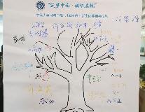 活动伊始,一种别样的签到方式,将24班26名同学紧紧系在了一起,在精心绘制的签到大树图画上,同学们五彩的签名缀于枝杈。在生存空间游戏中,同学们被分成四大组,每组成员必须同时站在半张报纸之上。同学们怪招齐出,或是抱,或是背,团队协作让大家凝聚成一团。