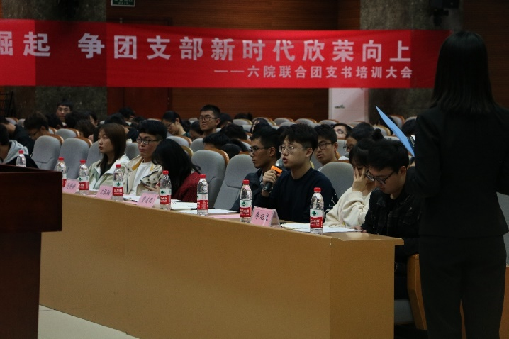 六院优秀团支书代表周仕捷、葛婉逸分别就团日活动的前期策划、主题选择、中心思想和团日总结的书写等方面通过典型事例为到场的团支书们进行培训。在团日活动设计答辩环节中,他们将理论与实践相结合,使团支书更进一步地了解团日活动的相关事宜。其中第二十五组材料院的答辩尤为具体,他们就火灾的防范和逃生进行了充分的讲解,并在与评委的提问回答中表达了团日活动的核心思想。
