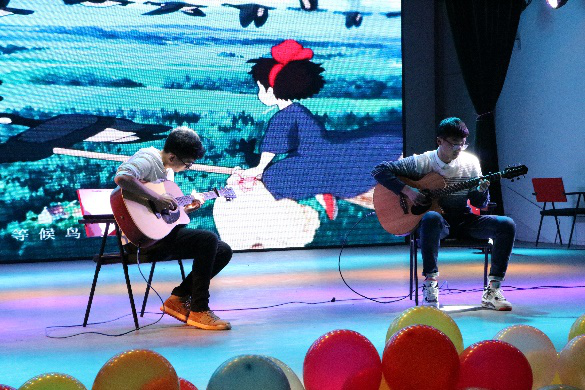 MT乐队的歌曲《起风了》在律动的灯光中响起,美妙的歌声感染着评委和观众。朱宇翔和居沛文的双吉他指弹《风向仪》,其悦耳的旋律,清新的声色,默契的配合让人沉醉其中。