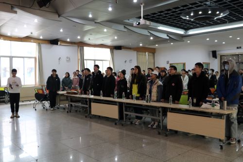 会议在嘹亮的共青团团歌后开始。逄静静老师简单介绍了本次会议的大概要求,并强调在工作中秉承团学会的宗旨:团结、务实、创新、争一流,每个部门、部员之间都要团结互助;做事严格要求,踏踏实实做事;各项活动、工作的形式、内容要力求创新,不辜负学院老师与同学们的期望,为同学们搭建展现自我的舞台,为学院营造积极向上的学习氛围。