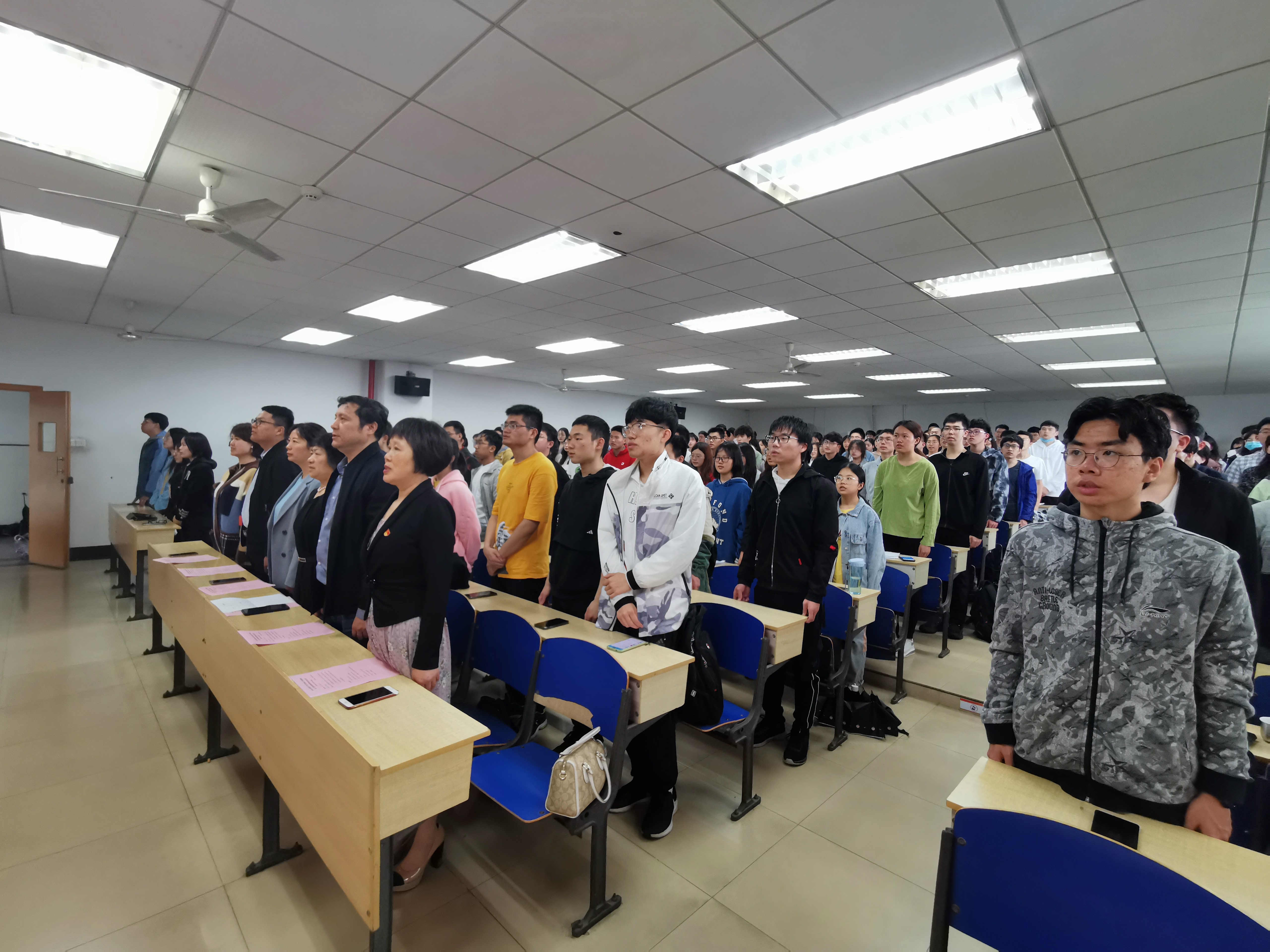 全体起立,庄严肃穆,结业典礼在国歌声中开始。