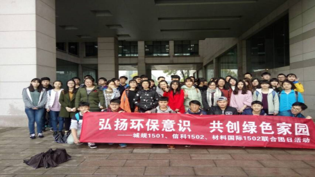 3月12日,材料国际1502,城规1501及信科1502班在新校开展“湘江之畔,踏青拾秽”联合班级活动。此次活动旨在弘扬环保意识,为打造绿色家园尽一点绵薄之力。