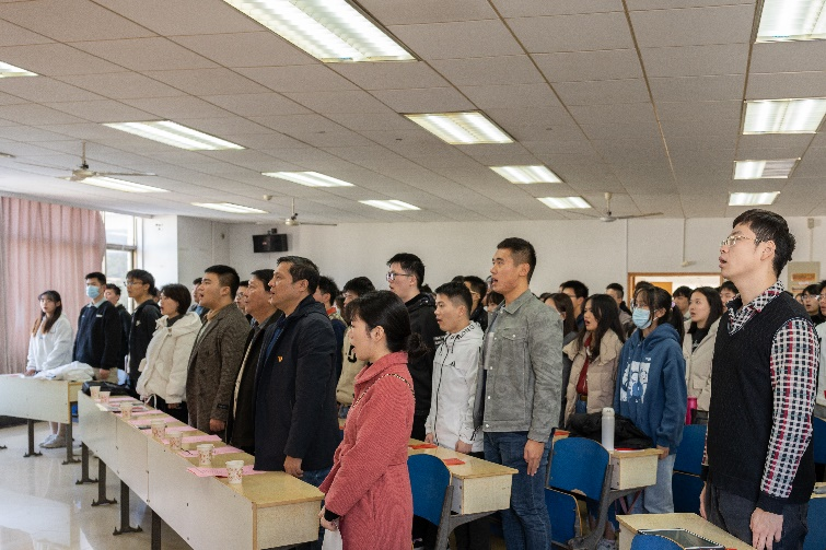 张桐老师介绍了本次结业典礼的与会嘉宾后,典礼在庄严的国歌声中拉开序幕。
