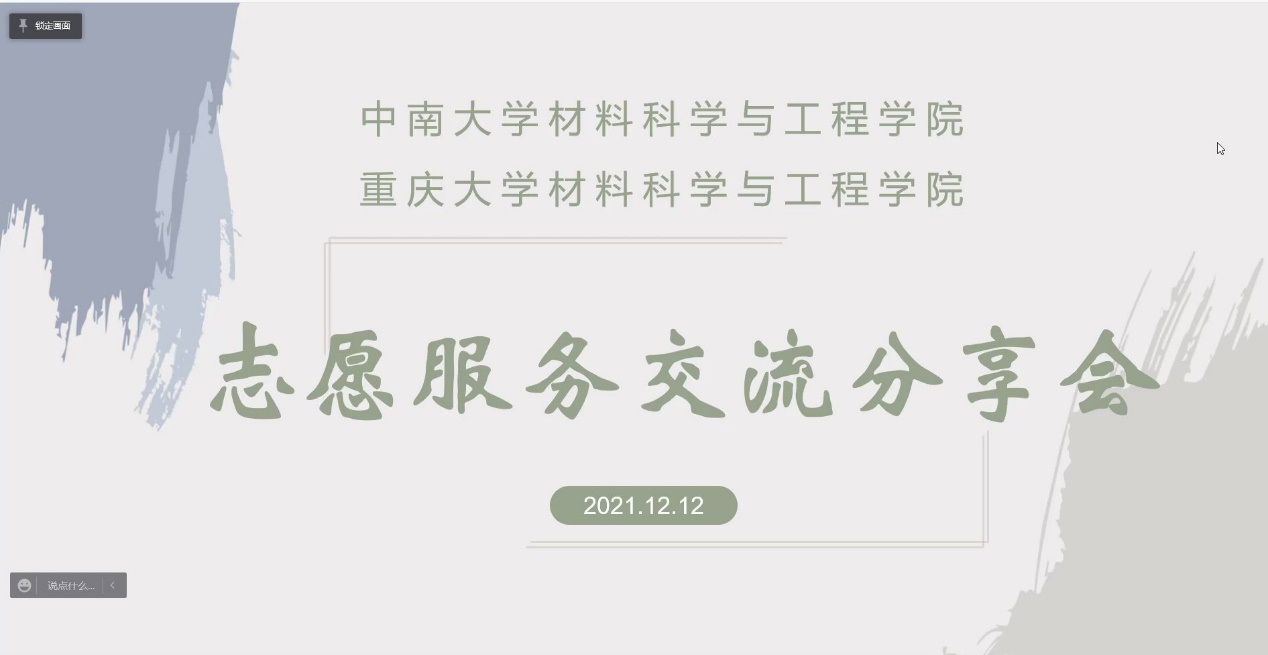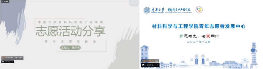 在两校材料院青志协负责人的精彩总结和参会同学们的积极互动结束之后,本次两校联合线上志愿服务交流分享会圆满结束。本次会议倡导了互助互爱和无私奉献的精神,传播了“奉献、友爱、互助、进步” 的思想,使广大同学对志愿服务有了更深刻的了解,这在一定程度上提升了大学生的社会责任感,并有效地呼吁更广大的群体参与到爱心志愿服务当中。同时,志愿服务交流平台的建设有助于两校同学集思广益,共同策划、监督新志愿服务项目和活动的开展,力争让志愿服务工作具备更高的立意和更深远的影响力。