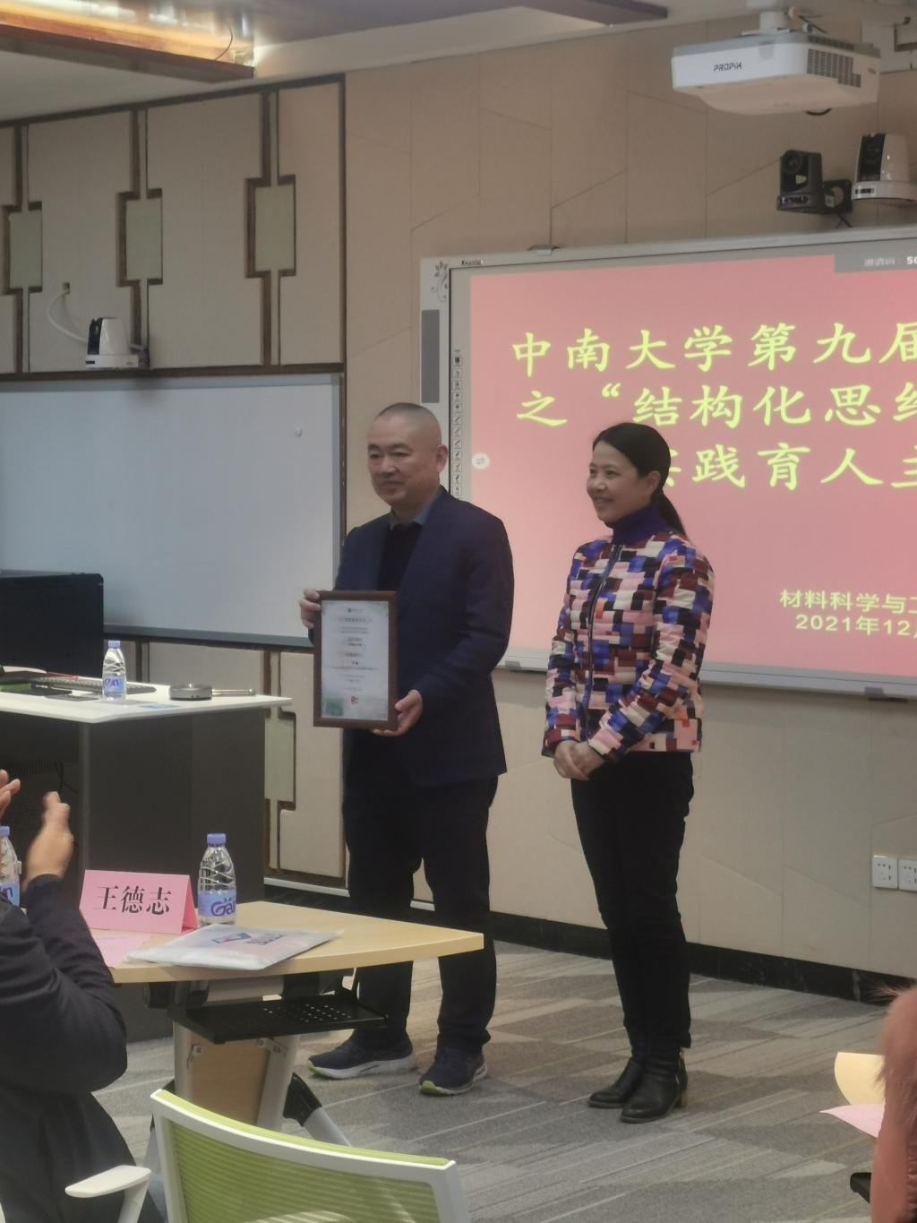 接着,金一粟主任向田陆总裁颁发“实践育人特邀报告”证书。