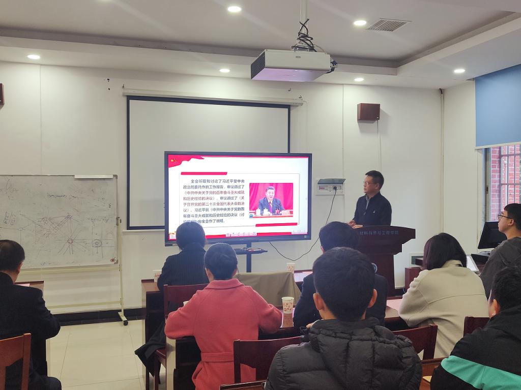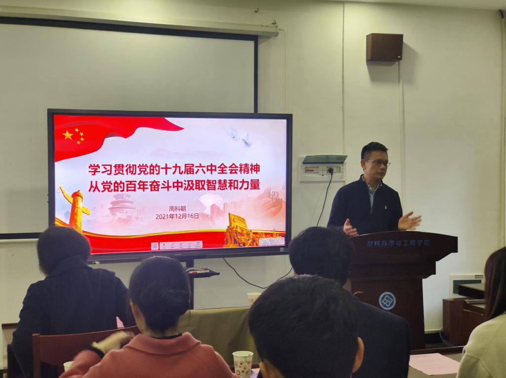 在讲授过程中,周校长向同学们提出几点要求和期望:1. 牢记根本问题。全党要牢记中国共产党是什么,要干什么这个根本问题,把握历史发展趋势,坚定理想信念,牢记初心使命;2. 提高政治站位。作为研究生党员,除了要努力学习专业知识,还要认真学习党史,更要有坚定的理想信念,时刻与党中央保持一致;3. 坚持科技创新。在材料学科发展的过程中,党员要争当科技创新的先锋,为振兴中华、振兴我们的事业努力奋斗。