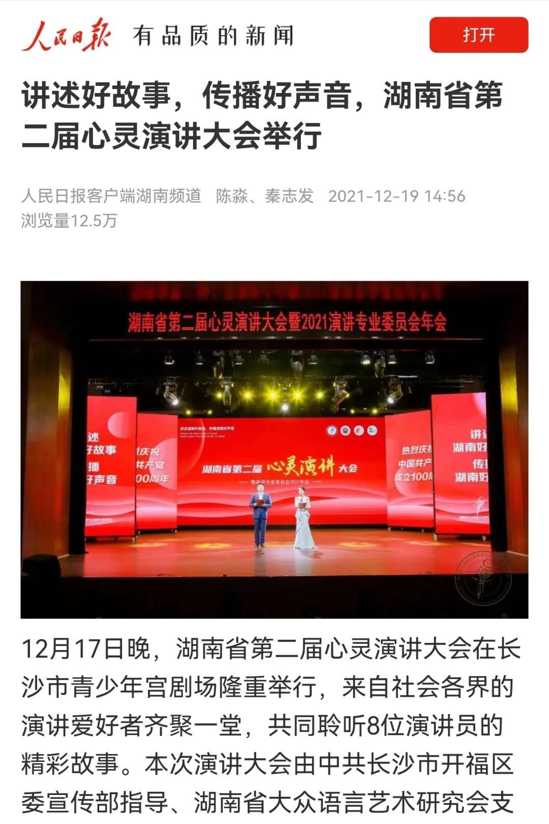 近日,湖南省第二届心灵演讲大会在长沙市青少年宫剧场举行,伟德betvlctor1946党委副书记胡小清、团委书记张彦隆受邀出席。会上,数位辛勤劳动、无私奉献、敢为人先的基层先进典型讲述了自己身边感人肺腑、发人深省、催人奋进的奋斗故事。本次演讲大会由中共长沙市开福区委宣传部指导、湖南省大众语言艺术研究会演讲专业委员会(下称演讲委)主办,受到人民日报、新湖南、红网时刻等多家媒体宣传报道。