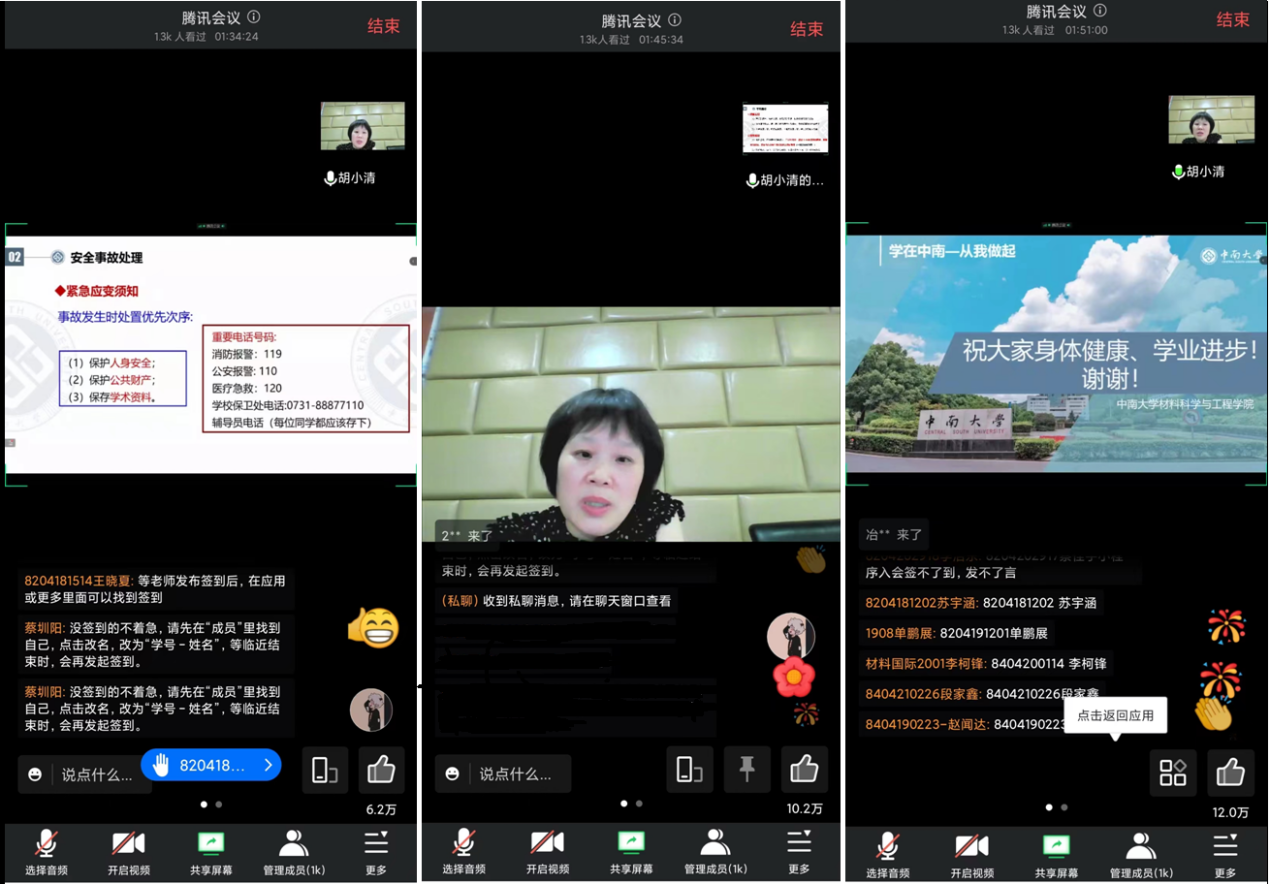 在疫情防控常态化的态势下,本次会议在腾讯会议平台举行,通过实名签到、同步比对、线上交互等形式实现1300余本科生全员参会,累计点赞次数超12.7万。