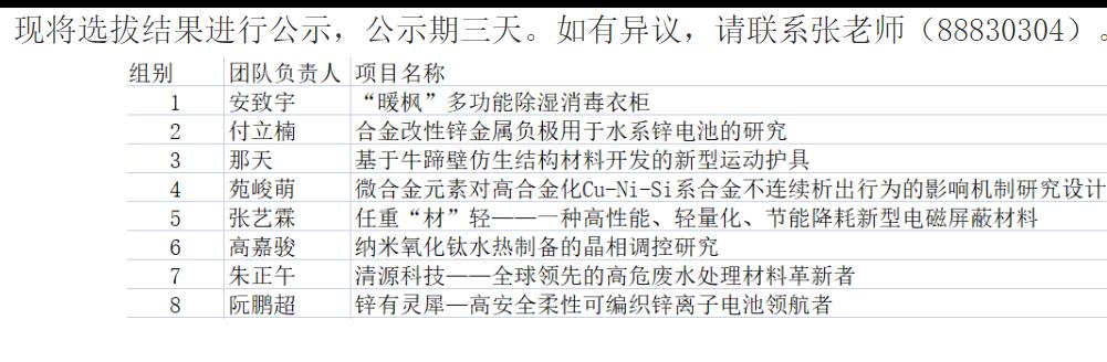 图为在院网对选拔队伍进行公示