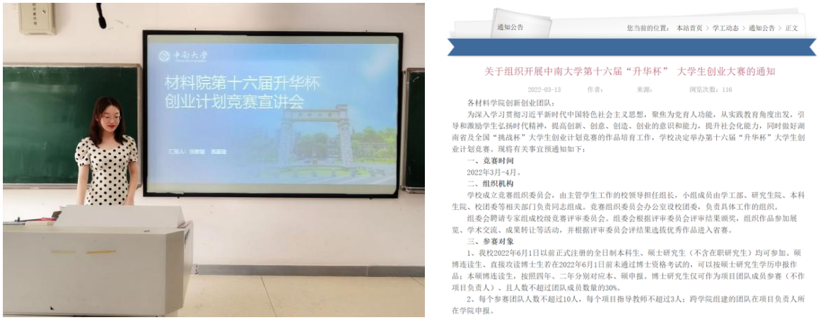 1.举办宣讲会积极动员学院学生参加“升华杯”创业计划竞赛,在学院网站发布“升华杯”大学生创业计划竞赛相关通知。