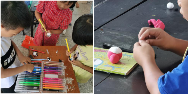 例如团队开设的“遇见冬奥吉祥物”手工课程,用简单易得的材料——超轻粘土制作冬奥吉祥物冰墩墩与雪容融,在带领同学们制作前讲述它们蕴藏的文化内涵。同学之间能够互相帮助,感受手工制作的乐趣。