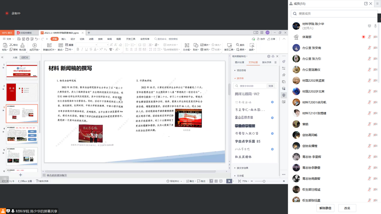 最后,陈少华强调了在撰写新闻、文件、推文等资料时,应严格按照规定对文本的格式、照片的形式进行编辑,做到文案重点突出、信息明确、美观大方,提高伟德betvlctor1946团委学生会网络宣传工作的水平,建设一支高质量高水平的学生宣传工作队伍。