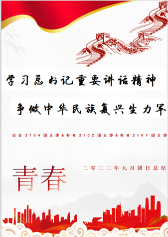 2022年9月6日,由冶金2104班沈钰珂、材料2102班兰星霞、材料2107班李昊洋三位团支书共同主持的团日活动班会于A座302教室顺利开展。"五月的花海,初升的太阳",此次团会于团歌的激昂旋律的伴随中拉开序幕,这首歌数年来激励着共青团员风雨兼程,扬帆奋进,而今也会激励着新生力量展翅高飞,鹏程万里。