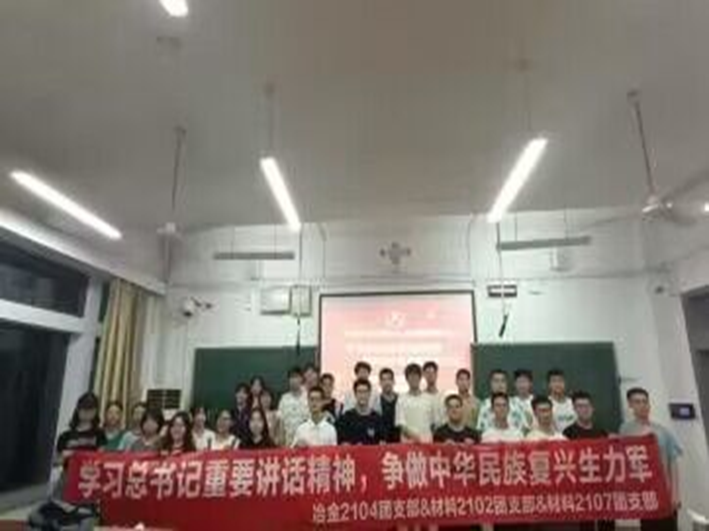 材料2102,材料2107,冶金2104三个团支部以"学习习总书记重要讲话精神,争做中华民族复兴生力军"为主题开展团日活动,希望我们的青年团员以习近平新时代中国特色社会主义思想为指引,坚定理想、主动担当、增长才干,以自强不息的精神、朝气蓬勃的姿态,奋力谱写中华民族伟大复兴进程中激昂的青春乐章,全力争做中华民族伟大复兴的生力军。