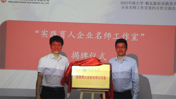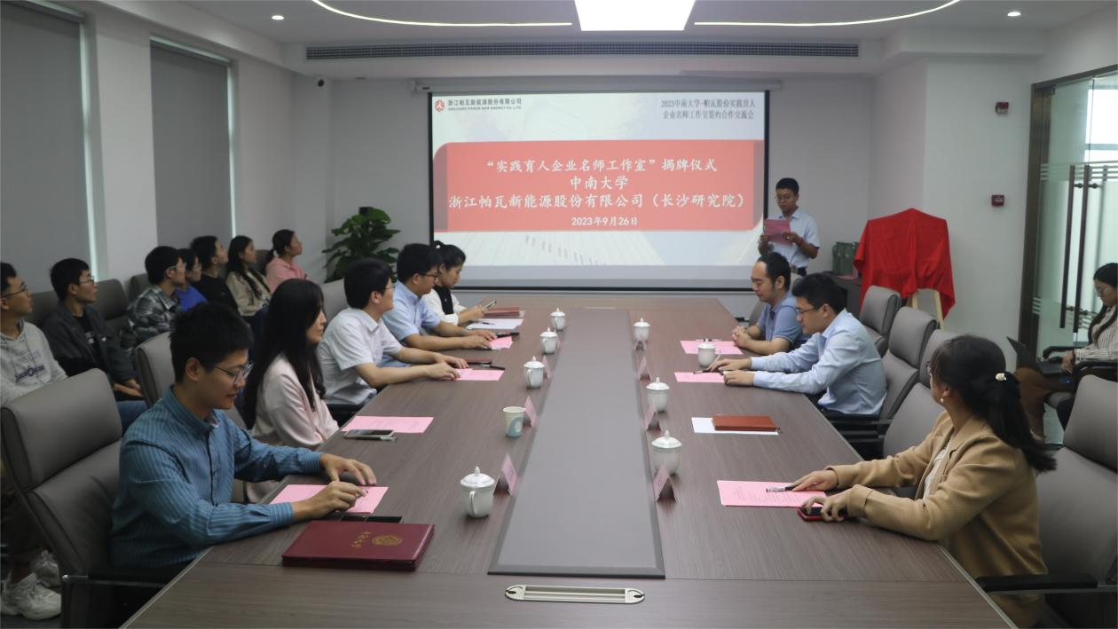 2023年9月26日上午,伟德bv1946官网首页-浙江帕瓦新能源股份有限公司“实践育人企业名师工作室”共建仪式在帕瓦长沙研究院顺利进行。伟德bv1946官网首页团委书记刘正宗、副书记李飞、社会实践部部长杨晖,伟德betvlctor1946党委副书记彭春丽、团委书记张彦隆,浙江帕瓦新能源股份有限公司副总经理程磊、人资总监赵如意、长沙研究院办公室主任卢梅艳、特约技术专家欧星出席仪式,伟德betvlctor1946学生代表共同参与本次活动。