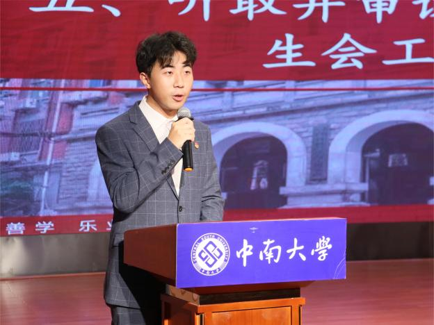 伟德betvlctor1946学生会主席陈少华和研究生会代表袁忠禹分别进行了上一学年工作汇报。陈少华表示,学院学生会取得的每一点进步和每一份成绩都离不开领导老师的悉心指导,更离不开广大同学的信任与支持。作为中南学子,我们应当要学会躬身力行,锻炼自身能力,应当共同营造良好的学风,参加多样的活动。袁忠禹讲到,学院研究生会服务水平与工作能力还能更进一步提升,将坚持以思想政治引领为根本,持续深化改革,全心全意为同学们服务,全方位服务同学成长成才。