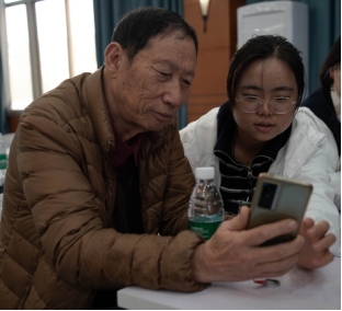 活动现场,气氛活跃而温馨。辅导员陈少华老师、学院团学会青年志愿者协会与社会实践部的同学们以及全体志愿者齐聚一堂,共同见证这场跨越数字鸿沟的温暖传递。志愿者们化身耐心细致的“小老师”,围绕三大贴近生活的主题精心设置了教学内容:“豆包AI修图三步法”让老同志们轻松掌握图片美化技巧,将美好瞬间定格得更加精彩;“剪映秒剪视频四键流”化繁为简,引导大家快速入门短视频创作,记录生活的点滴乐趣;“乘车码智慧出行”则切实解决了日常出行的实际难题,让移动支付变得触手可及。为巩固学习成果,激发参与热情,活动特别设置了趣味盎然的“任务卡”挑战环节。“银发学员”与各自的“小老师”组成默契搭档,在限定时间内展开热烈而友好的比拼。“老师,我这个滤镜加的对不对?”“快看,我的视频配上音乐了!”任务刚一发布,现场便响起此起彼伏的讨论声和欢笑声。每当一项任务成功完成,老人们便像孩童般兴奋地举手示意,脸上洋溢着自豪与喜悦。当他们用亲手完成的作品兑换到一份份精心准备的冬日小礼物时,满满的成就感与温暖情谊在现场弥漫开来。这一环节不仅是教学成果的检验,更是学生志愿者将所学知识转化为服务社会能力的劳动实践过程。